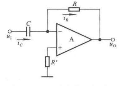 \[u_O = -RC\dfrac{du_I}{dt} \]