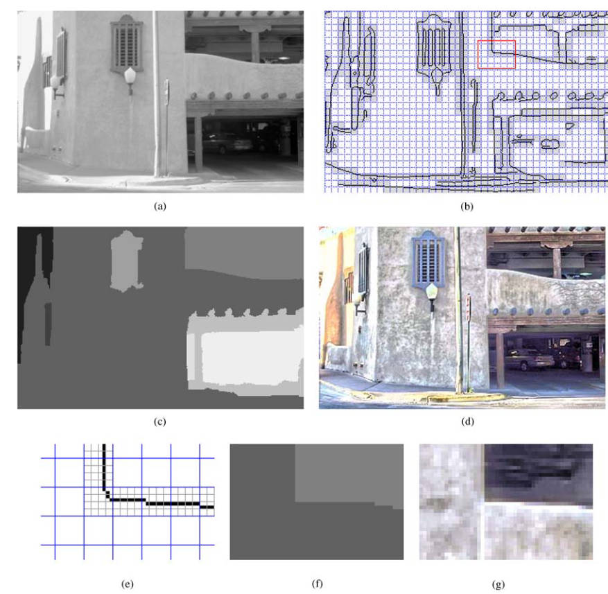 本文提出了一种非常不一样的策略,首先,它不使用那套提取出亮度,进行压缩,再进行颜色恢复的方式,而是把颜色和亮度一起考虑。首先,将图片分成重叠的方格,然后进行聚类,然后进行数据分析后的色调映射。